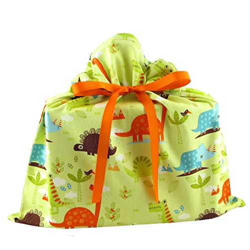 Dinosaurs II Reusable Fabric Gift Bag for Child's Birthday or Other Occasion (Medium 17 Inches by 18 Inches)
