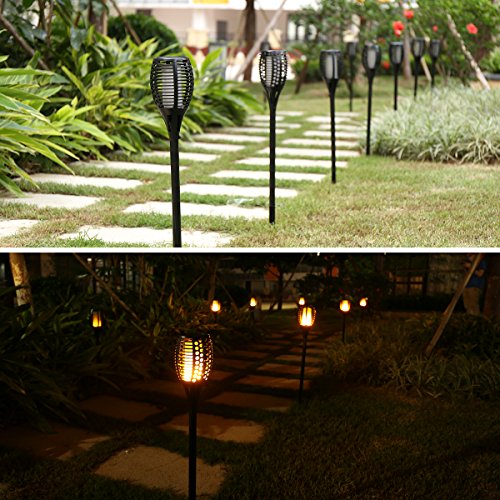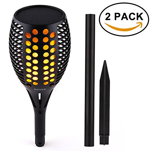 AICEDA Solar Lights,Waterproof Flickering Flames Torches Lights,Outdoor Landscape Torch Light,Dancing Flame Lighting,LED Flickering Tiki Torches Light for Garden Patio Deck Yard Driveway(Pack of 2)