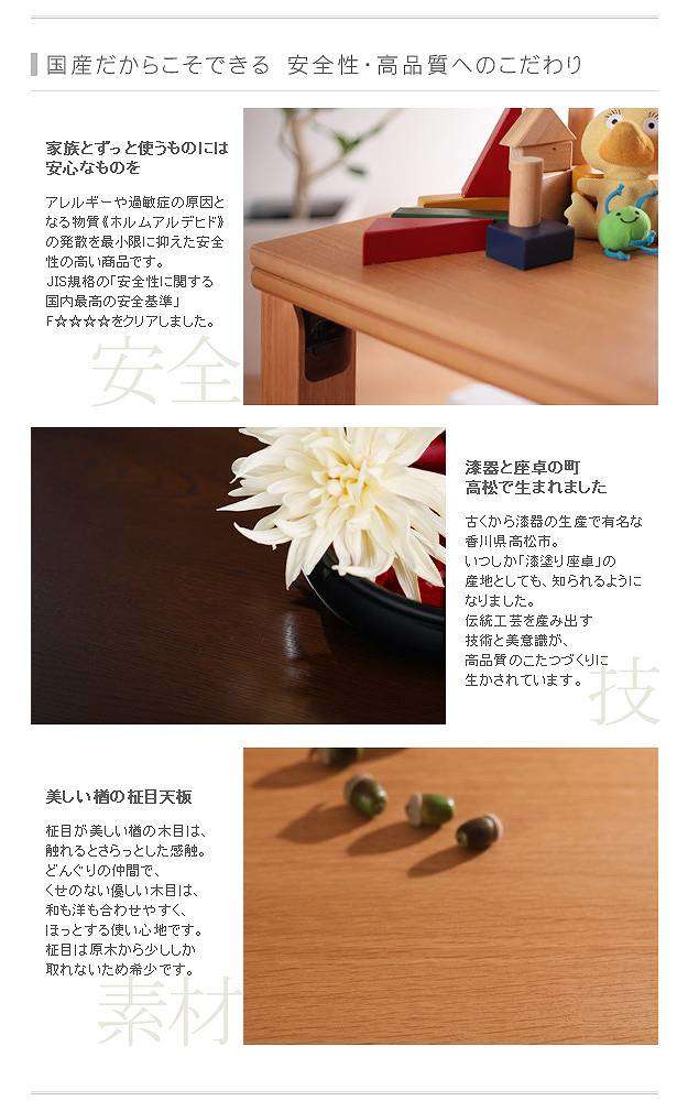 ●材質:天板-天然木化粧繊維板(楢)、こたつ布団(表地・裏地)-綿100%〔Aエステルストライプ表地-ポリエステル100%〕