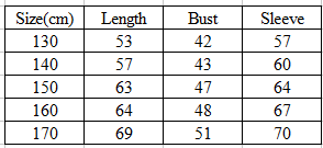 Size:130cm 140cm 150cm 160cm 170cm