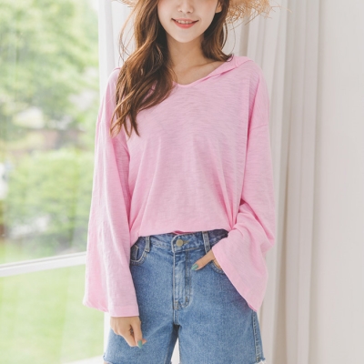 장마철 / 커버업 / 데일리 실용적인 후드 박시 티셔츠 # 원단과 디자인 30수 슬라브 코튼100% 원단으로, 면혼방 슬라브 원단에 비해 단단하면서도 부드러운 원단의 티셔츠에요. 가로 줄무늬가 들어간듯한 슬라브 소재로 일반 코튼 원단에 비해 단조롭지 않구요! 두 번의 바이오워싱 처리를 해서, 수축률과 뒤틀림 방지를 더했기 때문에 훨씬 퀄리티 좋아요! 박시한 스타일로, 내츄럴하면서도 캐쥬얼하게 연출하기 좋은 티셔츠입니다. 루즈한 어깨라인에 소매끝쪽으로 갈수록 넓게 떨어지는 벨(bell)라인의 소매 실루엣이 여리여리한 무드를 더해준답니다 ! # 착용감과 핏 박시한 후드와 여유있는 품으로 어디에나 부담없이 매치 하기 좋고, 편안한 착용감이 느껴지는 티셔츠에요. 스판끼도 어느정도 있기 때문에 더욱 편하구요 ! 자연스럽게 떨어지는 후드가 앞에서 보았을 때 마치 마린룩처럼 연출되어 심플한 디자인이지만 하나로도 멋지게 착용할 수 있답니다 ! 하의실종 패션을 연출할 수 있을만큼 힙을 충분히 덮는 기장감으로 더욱 부담없이 매치하기 좋습니다. 롱한 기장은 휴양지에서는 수영복 위에 커버업으로도, 일상에서는 장마철부터 간절기까지 여러모로 연출이 가능한 실용적이면서도 스타일리쉬한 스타일이에요 :) # 사이즈팁 88사이즈도 충분히 피팅 가능한 박시핏의 프리 사이즈입니다. 체형에 따른 핏감 차이는 사이즈표를 참고해주세요!