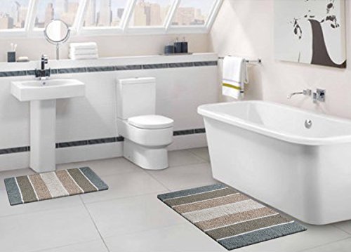 Studio : Chardin LLC Publisher : Chardin LLC Binding : Misc. Product Description The Chardin Home contemporary bath mat set (set of 2) is a set of essential bathroom rugs that do not compromise on style for the sake of functionality. The rugs in this set are made from 100% pure cotton. This helps in complete absorption of any water spill. It features anti-skid latex backing that prevents the rug from slipping. These contemporary bath rug set from Chardin is made with precision and its distinctive tufting provides for elevated patterns which are very soft to touch. These comfortable rugs are foldable, making them easy to store in compact spaces. Each set contains two rugs of different sizes. Both the rugs are rectangular in shape and can help accentuate the look of your bathroom, without compromising utility. These rugs are to be washed in the machine with cold water separately on a gentle cycle. Drying these rugs requires a tumble dry low setting so as to not harm their distinctive texture. 0