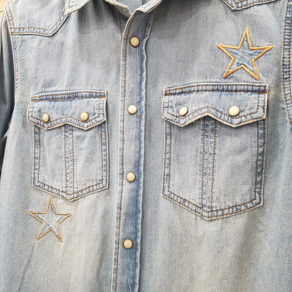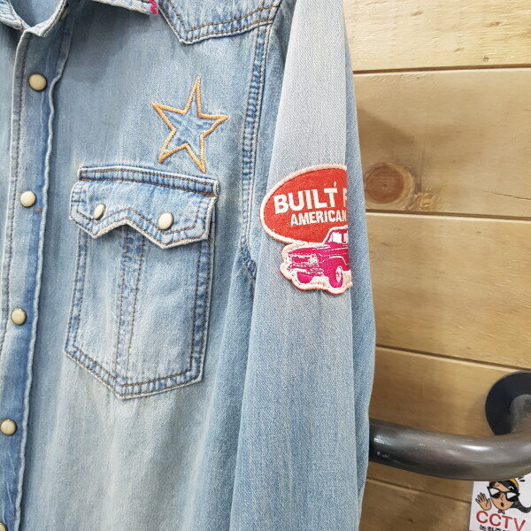 체크배색 데님셔츠