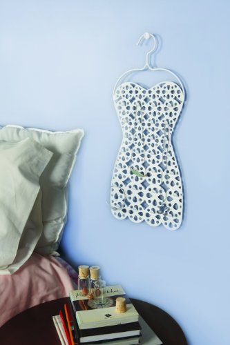 -. Feature : Chantilly jewelry organizer by Umbra / Constructed of white powder-coated metal / Decorative stamped metal design with tab hooks provides numerous places for hanging jewelry / 20-1/4 Inch by 3/4 Inch by 9 Inch; mounting hardware included / Designed by Moe Takra