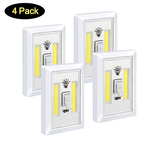 Closet Light Switch- ALECTIDE Battery Operated Night Light Switch 4 Pack Emergency Light for Wall Wireless Mount Under Cabinet, Shelf, Counters,Storage Room Kitchen, Night Reading and More
