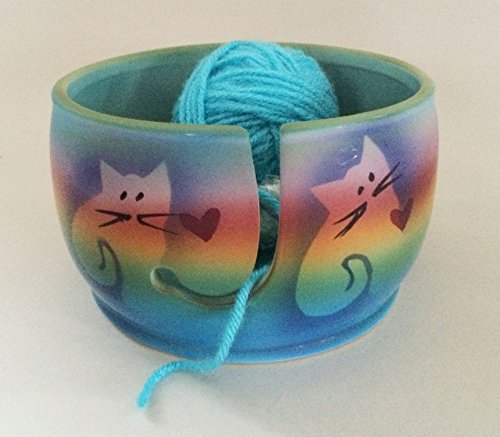 Kitty Cat Yarn Bowl by Award-Winning Artist Judith Stiles. Handcrafted Pottery Knitting Bowl, Handmade From Durable Pottery. Gift for Knitters, Cat Lovers and Animal Lovers. Made in the USA.