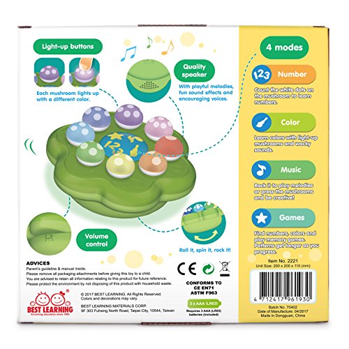 Early educational toy with colorful light-up mushrooms to learn numbers, colors and play music.