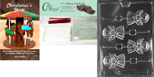 Cybrtrayd 45stK25RBk-C106 Angel Lolly Chocolate Mold with Chocolatier's Bundle of 25 Lollipop Sticks, 25 Cello Bags, 25 Red Twist Ties and Chocolatier's Guide