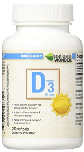 Product DescriptionNature's Wonder Vitamin D3 50mcg. Supports strong bones. Equivalent to 2000IU.0