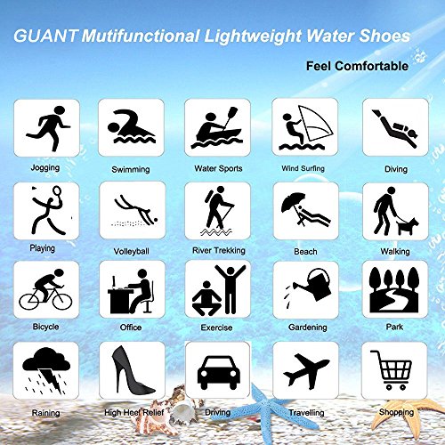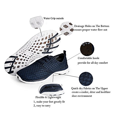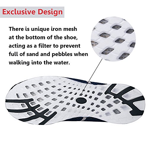 -. Feature : UNIQUE DESIGN IN SOLES: The unique iron mesh is designed at the bottom of the shoe,acting as a filter to prevent full of sand and pebbles when walking into the water. / QUICK DRY WITH DRAINAGE HOLES: Unique and top-quality sole with holes on each bottom to ensure proper water flow out of them which creates a cooler and healthier shoe environment, quick-dry, super comfortable during water sports. / BREATHABLE & COMFORTABLE: Breathable and durable air mesh upper allow the foot to breathe, provides for superior breathability and quick drying.Smooth designed neck prevents chafing when wearing our water shoes. / ANTI-SLIP OUTSOLE AND DURABLE :Water Grip outsole provides exceptional traction in wet and slippery conditions.Excellent workmanship to prevent the seams around the toes fray and split within a short time. / LIGHTWEIGHT & EASY-ON CLOSURE: Light-weight EVA with rubber patch outsole,super lightweight,take it everywhere conveniently.Slip on style allows for easy wear & removal, well fit for various occasions.