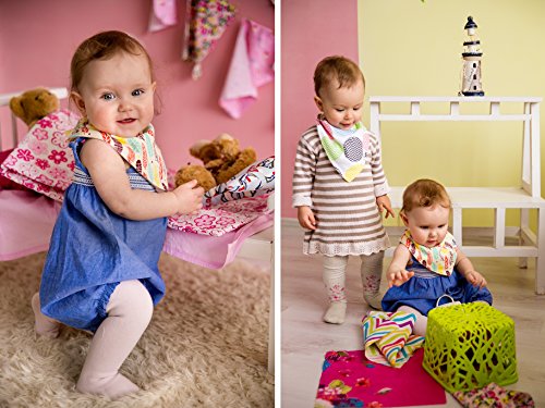 -. Feature : FUNCTIONAL AND TRENDY DESIGN: two-layer structure baby bandana bib holds moisture well, protecting clothes and baby's skin. Prevents irritation and rash from emerging. This stylish accessory is perfect for playtime as well. Absorbs saliva (e.g. teething). Bright and colorful designs on the Baby bandana bibs make your child stylish and adorable. Bib can also be used as a great accessory for any child's dress. Designs available for both boys and girls. / SAFE AND HYPOALLERGENIC: The outer layer is made of 100% organic cotton, and the inner part is of soft fleece. Fixing snap-buttons on the bib are nickel-free; they don't contain harmful substances that can cause allergies on baby's sensitive skin / IMPROVED CONSTRUCTION: Updated design features an inner stitch, adding both style and durability. A third locking snap-button provides flexibility to fit babies between 3-36 months of age. Excellent print technology preserves the quality of product designs, even after many wash cycles. / A WONDERFUL GIFT: Need an idea for a baby shower, birthday, other occasion or no particular occasion at all? Trendy Kitty is always pretty yet practical. Each Trendy Kitty package includes 4 unisex baby bandana bibs packed in beautiful and earth-friendly packaging. As an added bonus, we've included a children's e-book for boys or for girls at your choice. Order now for a great gift for the new mom or mom-to-be. / MONEY BACK GUARANTEE: Our 100% Money Back Guarantee means we have confidence in our product. If you are dissatisfied in any way, simply return it within 90 days and we'll refund your money without question. There's no risk in adding it to your cart today! Click the "add to cart" button confident that you're protected by our no questions asked, money back guarantee. At Trendy Kitty, our goal is 100% customer satisfaction