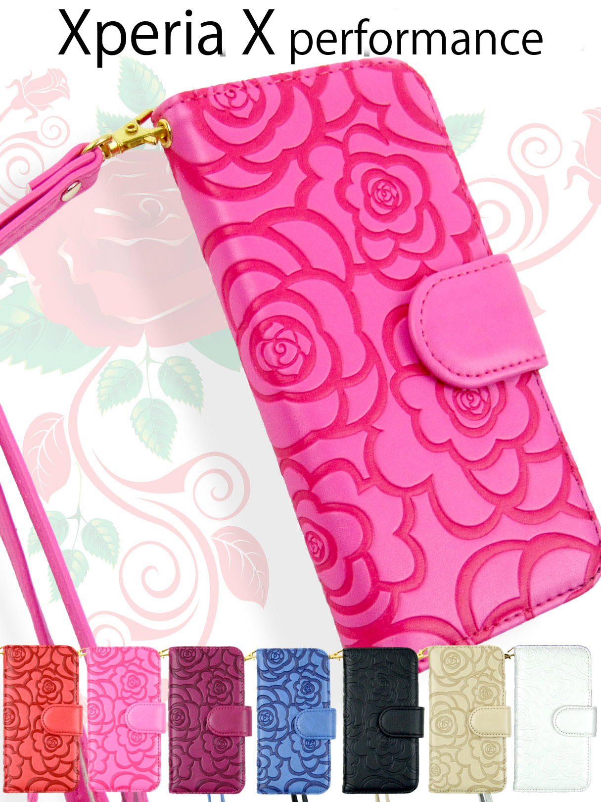 ◆手帳型Xperiaケース◆マットな質感のPUレザー製の二つ折りiPhoneケースです。上品さとキュートさを兼ね備えた花柄型押し。素材の発色も綺麗で高級感があります。シンプルでスマートなシルエットですが、内側にはカードケースやフリーポケットが付けられており、収納性も高く便利な仕様となってます。ストッパーはマグネットで固定できるので誤って開閉してしまうこともありません。 全7色※ご利用のモニター、ディスプレイにより若干色味に差がある場合がございます。ご了承ください。※商品の生産時における装飾等は海外にて手作業で行っており、多少の差異がある場合がございます。ご了承ください。