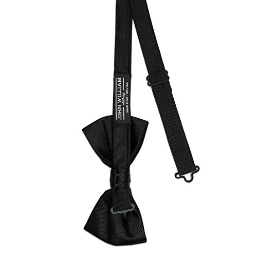 Binding : Apparel Product Description Why settle for cheap synthetic ties? Our John William Men's Pre-tied Bow Tie comes in 100% silk, one of the world's most luxurious fabrics. Yet it's affordably priced ... far less than ordinary silk ties. Pure Silk: Nothing Else Comes Close You'll instantly notice the difference. The soft, sumptuous feel. The rich, elegant sheen. No polyester or microfiber tie can compare! Hand-Sewn Right Down to the Bartacks Unlike machine-made ties, this premium bow tie is sewn the time-honored way - with painstaking hand stitching. Designed for Today's Well-Dressed Man It's the perfect modern woven pre tied bow tie , and it comes in crisp, solid color that coordinate well with most suits and dress shirts. 30-Day Money-Back Guarantee, So Order Now! Plus, don't forget to stock up for your gift list.