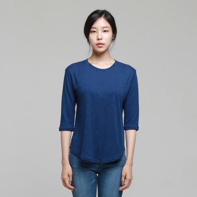 자연스러운 루즈핏의 라운드넥 7부소매 티셔츠.
