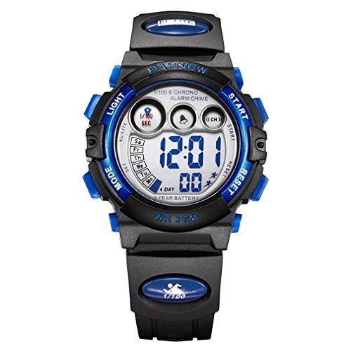 -. Title : Multifunctional LED Waterproof Outside Sports Electronic Digital Watch for Children Girls Boy (Black with Blue)