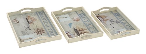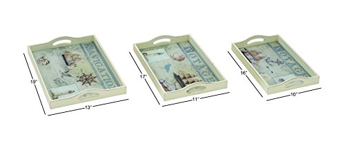 Deco 79 54034 Enthralling Wood Glass Tray, Set of 3