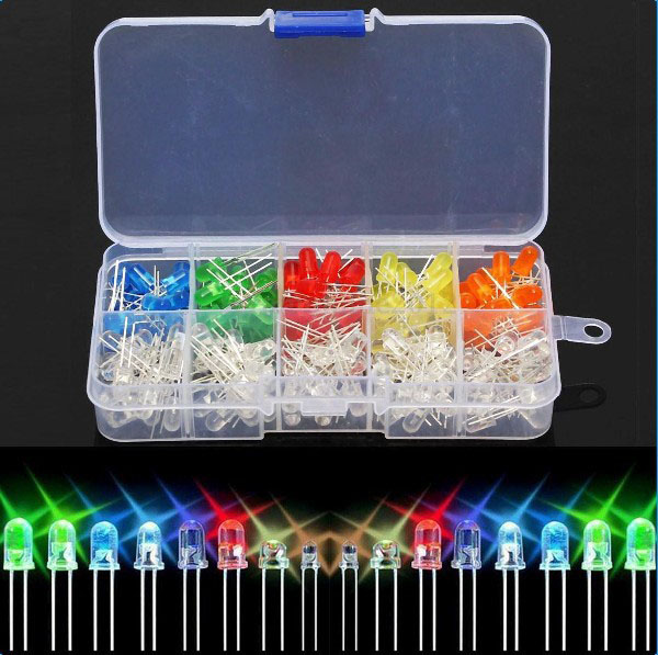 【300個セット】 発光ダイオード 5mmヘッド 5色 各20個 & 3mmヘッド 5色 各40個