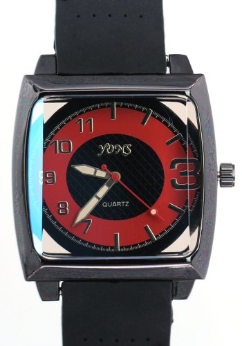 -. Title : TimerMall Black Rubber Band Red Dial Tungsten steel Quartz Movement Watches
