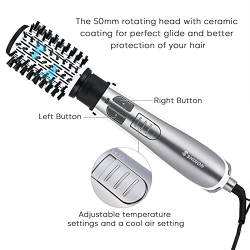 - ABUNDANT HAIR AIR BRUSHES ATTACHMENTS: the 50mm rotating head with ceramic coating for perfect glide and better protection of your hair,20mm round Brush for the finishing touches, highlighting the shape of specific sections of hair like the fringe, the tips or the roots