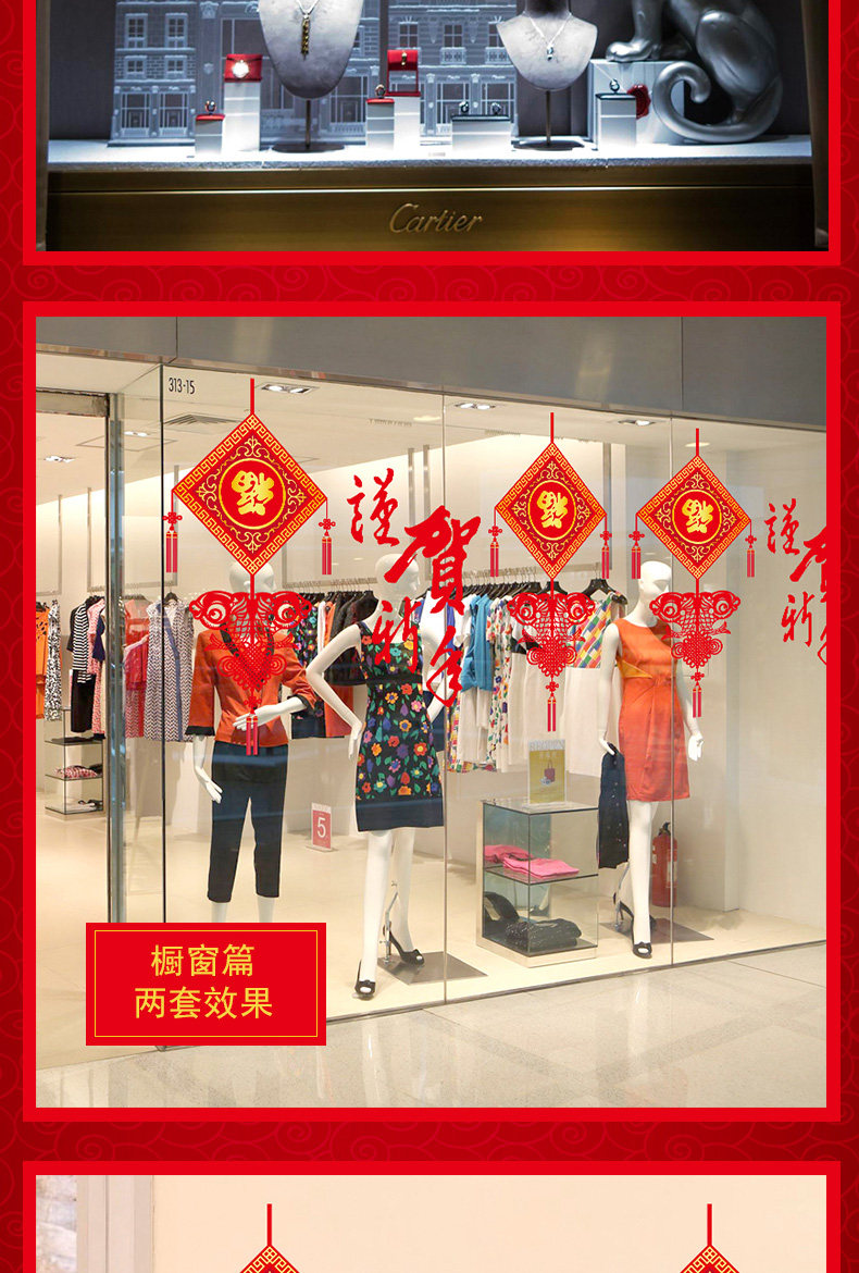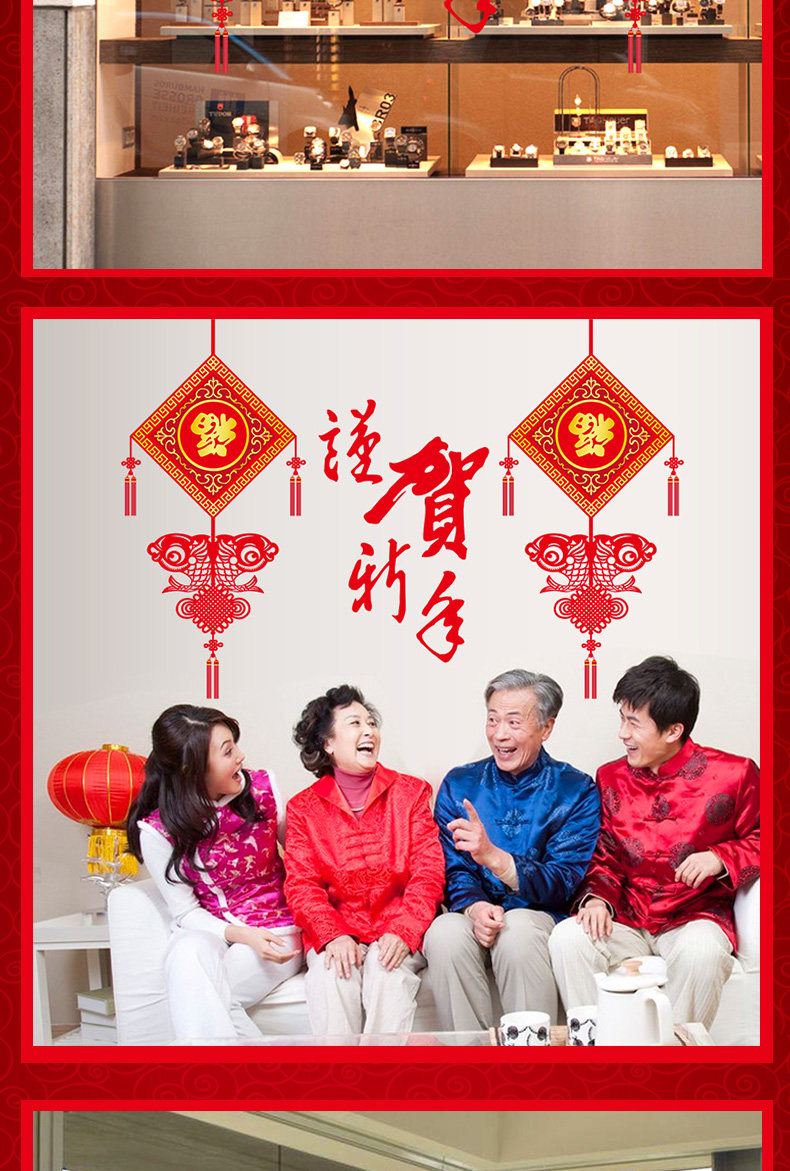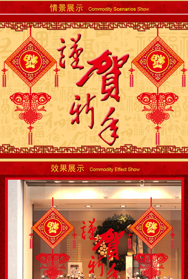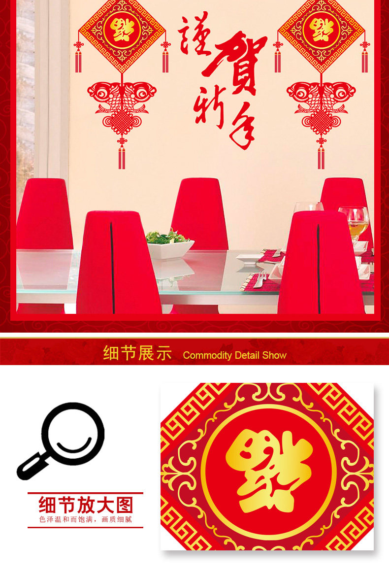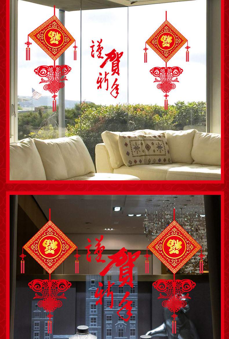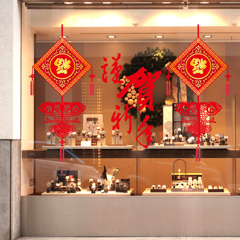 谨贺新年新春贴纸橱窗玻璃门窗墙贴纸春节气氛场景布置装饰品贴画