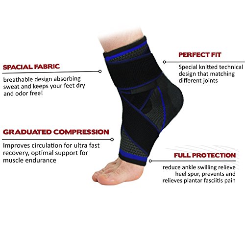 -. Feature : ADVANCED SUPPORT : Ankle support with crisscross reinforcement straps offer strong support & stabilization for the ankle tendons and joints.Designed to minimize the risk of injury especially during the strenuous activities / PAIN RELIEF: Scientifically designed ankle brace provide premium achilles heel & arch support,promote blood circulation,brings effective pain relief including plantar fasciitis, arthritis, sprains, swelling, tendonitis, muscle fatigue / SOFT & COMFORTABLE SOCK : Made of soft breathable elastic and moisture wicking fabric,our plantar fasciitis socks are form-fitting and anti-slid,easily fit into any shoes,effetively prevent skin irritations and sprain / SPORT SUPPORT: Ankle supports are the perfect fit for any activity requiring ankle movement without restraining your movements.Ideal for running,climbing,playing tennis or volleyball / SATISFACTION GUARANTEE -- We offer 100% risk-free refund&return guarantee.If you have any issue, please contact us