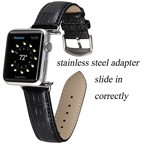 -. Title : Apple Watch Strap 38/42mm, BASN Genuine Leather Band with Stainless Steel Adapter Replacement Wrist Band Watchband for Apple Watch 38/42mm All Series