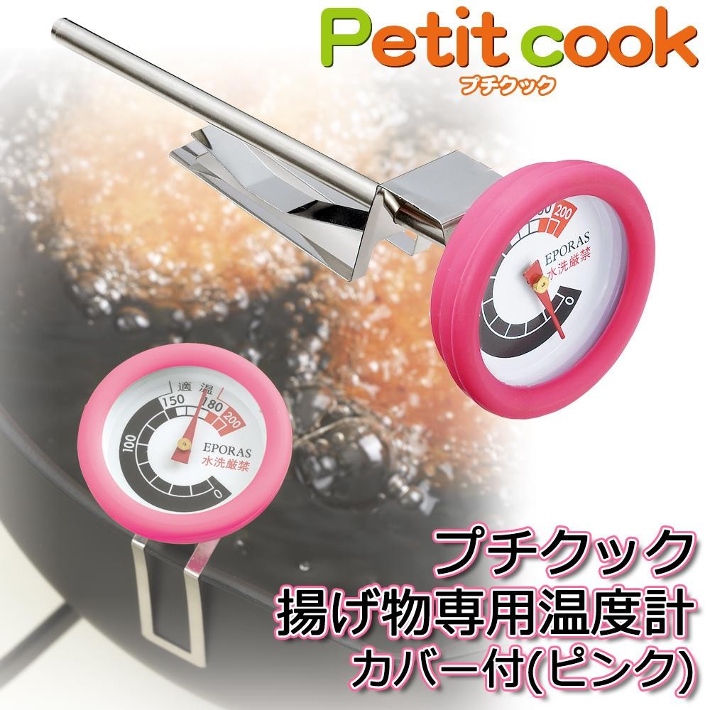 | 初心者の方もベテランの方も重宝する、揚げ物専用温度計です。適温が見やすい文字盤だからおいしく揚がる温度を逃しません!!取付け金具で簡単に取り付けできます。 |