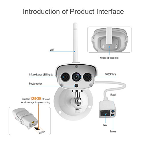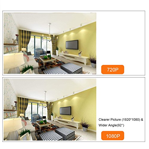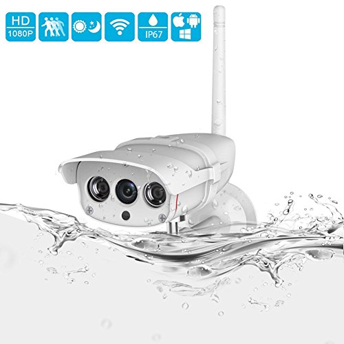 IP 67 Super-Waterproof&Excellent Viewing Image: This is an IP (Ingress Protection Rating)67 waterproof outdoor security camera. With its solid build structure, it can work in heavy rain, storm,thunder ect. It even can work under water. Very suitable for outdoor monitor. 1080x1920 full HD images, gives you a better viewing experience. And with a high quality lens, 1080P IP camera will have a wider angle than 720P one, which can reach 92°.