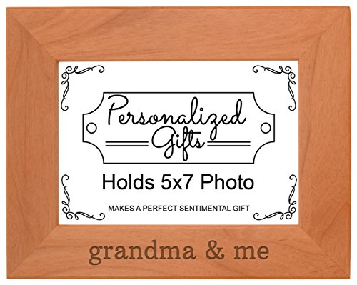 -. Binding : Kitchen -. Brand : Personalized Gifts -. Feature : A perfect Mother's Day gift or birthday memento for sharing memories. / Made from real wood, this natural frame will have its own unique coloration and wood grain pattern. Therefore, product may vary slightly in appearance from image shown. / Frame includes a glass front and can be displayed hanging or standing with built in hook and easel. / This beautifully crafted picture frame is designed and engraved in the USA. / Engraving and frame color may vary slightly, as each piece of wood is unique. -. Model : A-P-L-AWF-0239 -. ProductGroup : Home -. ProductTypeName : HOME -. Title : Mother's Day Gift Grandma and Me Natural Wood Engraved Photo Picture Frame