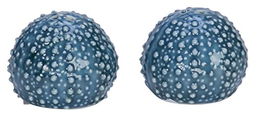 Royal Blue and White Sea Urchins Salt and Pepper Shaker Set Ceramic