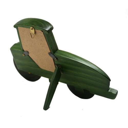 -. Binding : Toy -. Brand : M. CORNELL IMPORTERS INC. -. Color : Green -. EAN : 0610939069964 -. Feature : 8 1/2" long and 5 3/4" tall at tallest point / Sold as each / 2 1/2" leg to stand up or hang from hook / Made of wood / Holds 2" by 3" picture, must cut picture to shape -. IsAdultProduct : 0 -. IsAutographed : 0 -. Label : M. CORNELL IMPORTERS INC. -. Manufacturer : M. CORNELL IMPORTERS INC. -. MPN : 6996 -. PackageQuantity : 1 -. PartNumber : 6996 -. ProductGroup : Home -. ProductTypeName : HOME -. Publisher : M. CORNELL IMPORTERS INC. -. Studio : M. CORNELL IMPORTERS INC. -. Title : John Deere Wooden Tractor Picture Frame -. UPC : 610939069964