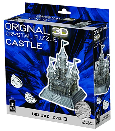 -. Binding : Toy -. Brand : Bepuzzled -. Department : Castles -. EAN : 0023332309566 -. Feature : The Black Castle Deluxe Crystal Puzzle from BePuzzled is a sleek, translucent, crystalline puzzle with 104 unique interlocking pieces / Take puzzling to a whole new dimension with this unique design / Enjoyable to work on, challenging to complete, fun to display / This 3D puzzle has a difficulty level of 3 and is fun for puzzlers age 12 and up / Approximate assembled size = 5-1/2" x 5-1/2" x 7-1/2" -. IsAdultProduct : 0 -. ItemPartNumber : 30956 -. Label : University Games -. Manufacturer : University Games -. Model : 30956 -. MPN : 30956 -. NumberOfItems : 1 -. PackageQuantity : 1 -. PartNumber : 30956 -. ProductGroup : Toy -. ProductTypeName : TOYS_AND_GAMES -. Publisher : University Games -. Studio : University Games -. Title : Original 3D Crystal Puzzle - Deluxe Castle Black -. UPC : 023332309566 -. Warranty : No Warranty
