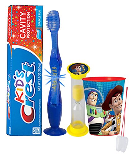 -. Feature : Turn something your kids have to do into something they want to do with help from Woody & Friends...Because when brushing is fun, it gets done! / (1) Firefly Youth Flashing Lights Suction Cup Toothbrush (Assorted Colors) (1) Kids Crest Cavity Protection Sparkle Fun Toothpaste, 2.7 oz / (1) Toy Story 16 Oz Mouthwash Rinse Cup! Doubles As Toothbrush Holder! / (1) Dentist Recommended 2 Minute Woody Themed Brushing Timer (Assorted Styles) / Plus Bonus "Remember to Brush" Visual Aid Tooth Saver Necklace. Hang it in their bathroom or by their bed so they remember to keep their chompers sparkly fresh. You could also use these tooth charms to save one of your child's baby teeth.