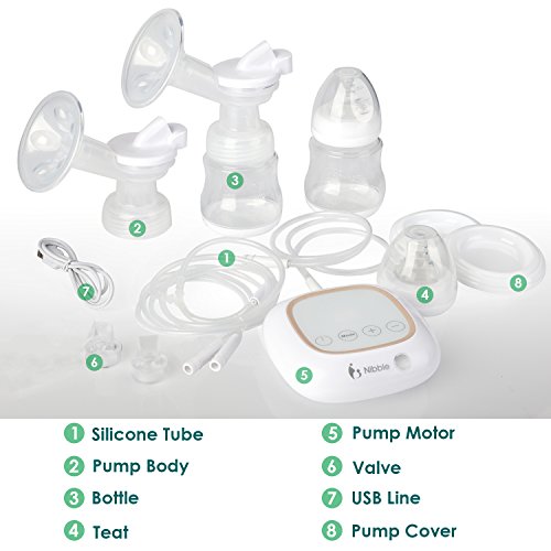 -. Title : Double Electric Breast Pump, Gland Breast Milk Suction and Breast Massage, Portable Breast Pump with LCD Screen Rechargeable Battery and Backflow Protector