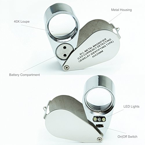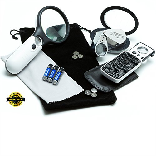 ✔ FREE BONUS & 100% MONEY BACK GUARANTEE (see Product Description for Details) *** Use our magnifying loupes as a jewelers loupe, coin loupe, geologist loupe, watch marker loupe and eye loupe; these lighted magnifiers are ideal for magnifying electronic circuits, coins, rocks, currency, stamps, gems, and jewelry including watches; suitable for hobbyists and professionals; all provide clear distortion free magnification & are scratch resistant.