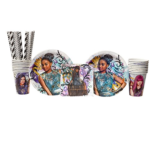 -. Feature : Descendants II Party Supplies Pack Includes: Straws, Dessert Plates, Beverage Napkins, and Cups / 24 Cedar Crate Market Brand Paper Straws in Stripes, Chevron and Dots Design, 7.75" (Made in USA) / 16 Beverage Napkins, 5" by Amscan / 16 Dessert Plates, 7" by Amscan / 16 Hot/Cold Cups, 9 oz. by Amscan