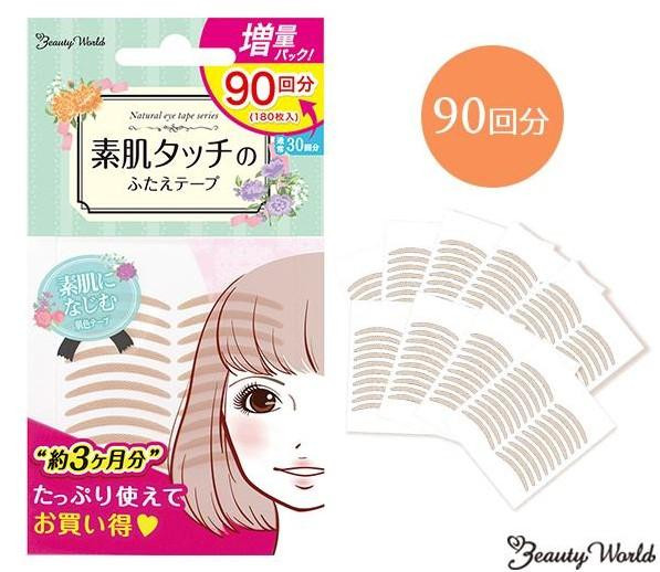 ばんそうこうタイプのナチュラルカラーアイテープ。肌なじみの良い色だから、メイクなしでもきれいなふたえに♪90回分のバリューパックです。 |