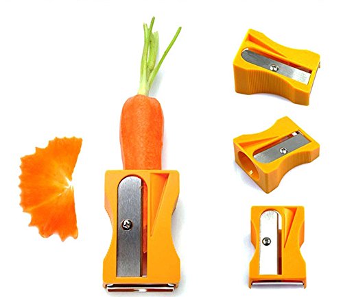 - Feature : This Carrot slicer looks like a giant pencil sharpener ,it is very newfangled / Great for carrots, zucchini, cucumbers and other similar shaped vegetables. / Fun and useful kitchen gadget ,great gift for any foodie / Cut your vegetables in different shapes to creat different shaped curled peelings / Wash and dry throughly after use to prevent rust on blades