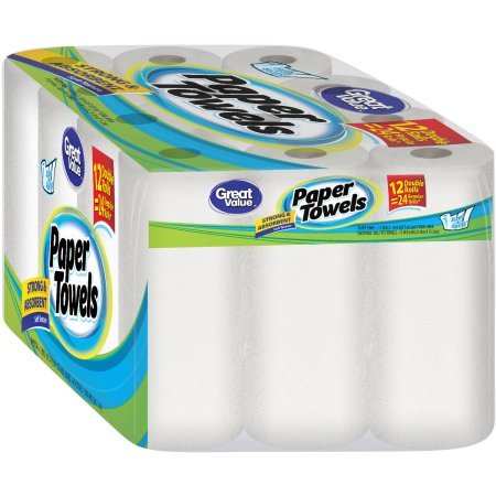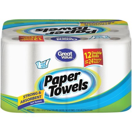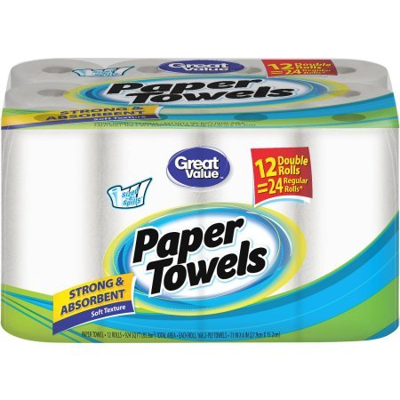 -. Title : Great Value Paper Towel Double Rolls, 168 sheets, 12 rolls 23 x 17.5 x 11 inches