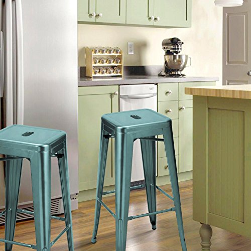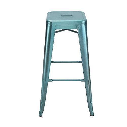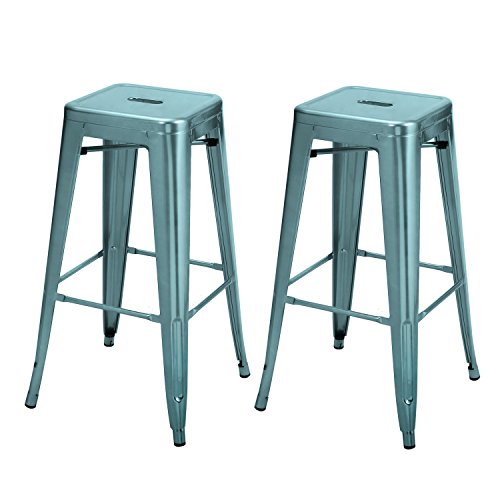 -. Title : 2016 NEW Adeco 30-inch Metal Bar Stools Barstool Tolix Style Industrial Chic Chair Backless, Glossy Blue, Set Of 2