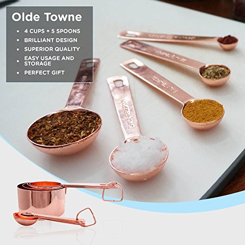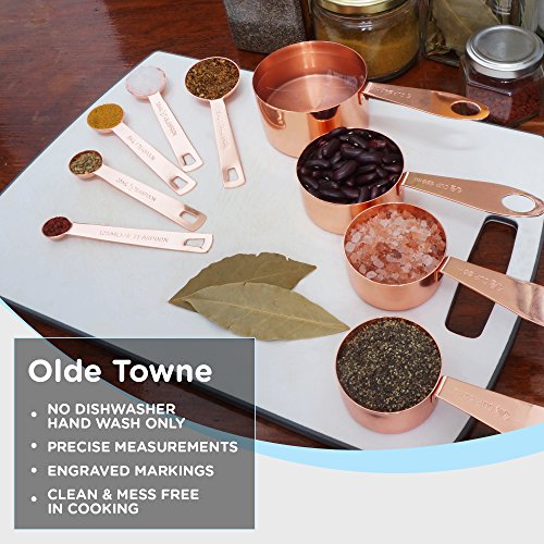 Vintage Design and Supreme Cooking Versatility These copper-plated stainless steel measuring cups and spoons offer vintage style that looks great in any modern or rustic kitchen. 0
