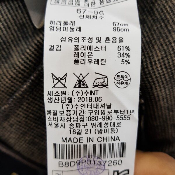 텐션감 좋은 잔체크 부츠컷팬츠55기준총장 90cm