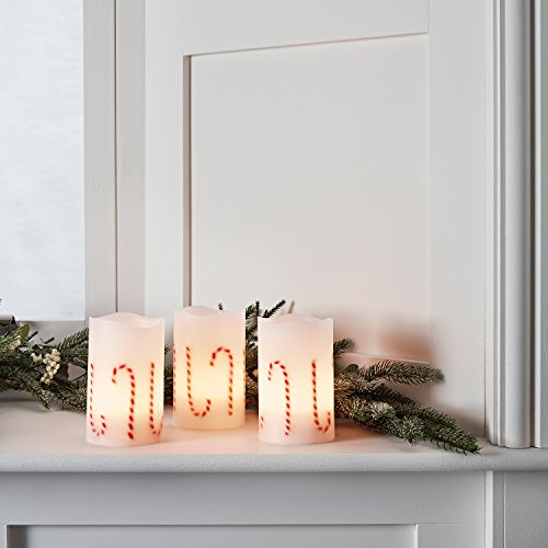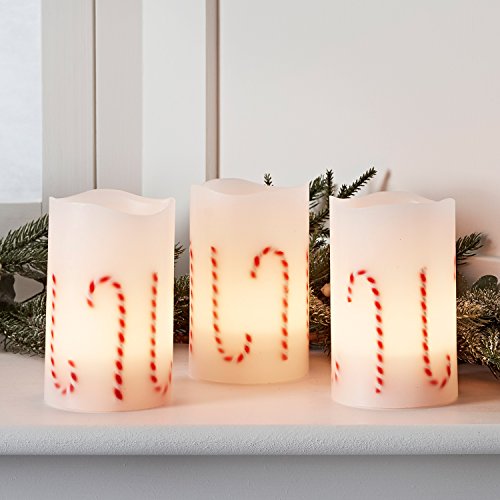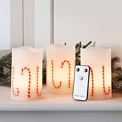 Set of 3 Battery Operated LED Flameless Christmas Candy Cane Candles with Remote Control