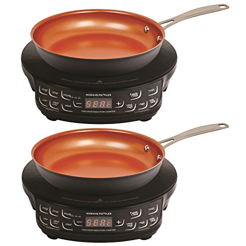 NuWave's Precision Induction Cooktop Flex offers precise temperature control with the simple press of a button. You can adjust the cooking temperature in 10 Degree increments between 100 Degree and 500 Degree F for a total of 45 precise temperature settings. The PIC's induction technology heats the cookware directly, no the surrounding area, making it incredible safe. With no open flame or hot coil, there's virtually no risk of fire. Utilizing 1300 watts of power, the lightweight and portable PIC allows you to cook gourmet meals virtually anywhere. It even offers state-of-the-art programming technology with 100 hours of memory that allow you to program your favorite cooking procedures. A 9" hard anodized Duralon Healthy Ceramic Non-Stick Fry Pan is included. This versatile pan is the perfect complement to the NuWave PIC Flex, allowing you to cook your favorite foods without adding any unhealthy fat or oil.Feature