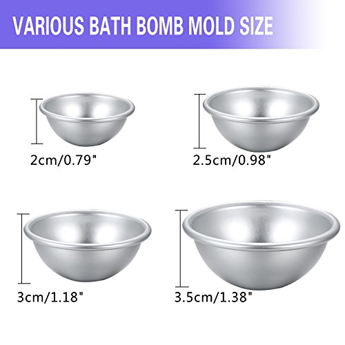 VARIOUS BATH BOMB MOLD SIZE: 4 diameters of molds are included, 3.27 inches (huge), 2.56 inches (large), 2.17 inches (medium), 1.77 inches (small), fit for different needs