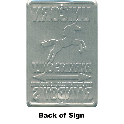 Unicorn Parking Only Sign, Violators Will Be Turned Into Rainbows, 8 x 12 Inch Aluminum Novelty Signs For Kids Room, Funny Metal Wall Décor, Gifts for Girls
