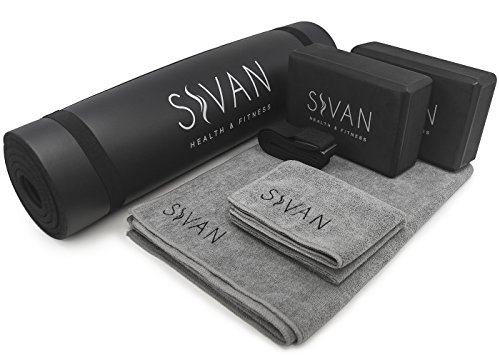 Binding : Misc. Product Description Take a journey through the self with Sivan 6-Piece Yoga Set! At 12mm, this yoga and pilates mat is a full 1/2" thick and is one of the thickest mats on the market! The mat features specially designed memory foam offering superior impact absorption and comfort. Thick enough to protect your knees and joints while still allowing you to grip the floor for balance, its non-skid ridges will ensure that the mat never slips during use. The extra large dimensions (71" x 24") ensure complete comfort for people of all shapes and sizes. Constructed from durable and long lasting NBR foam, this mat is ideal for all types of yoga, especially restorative poses. Additionally, the mat features an integrated carry strap for your convenience and wipes down quickly and easily. Provide support and balance with our durable foam yoga blocks and deepen your stretch with our 6.5ft yoga strap that allows for better extension of the body. Our 68"x24" and 30"x20" yoga towels are designed with microfiber technology and prime absorption to provide slip-resistant and sweat-free workouts. A great set for yoga, pilates, stretching and toning workouts. Be kind to your body and treat yourself to the Sivan 6-Piece Yoga Set, the ultimate set for any style of yoga! Package includes: 1/2" NBR yoga mat, 2 yoga blocks, 1 - 68"x24" yoga mat towel, 1 - 30"x20 yoga hand towel, and 1 yoga strap. 0