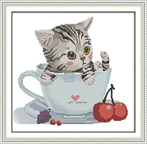 Full Range of Embroidery Starter Kits Cross Stitch Kits Beginners for DIY Embroidery with 40 Pattern Designs - Cat