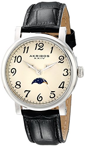 -. Title : Akribos XXIV Men's AK633SSW Retro Multifunction Silver-tone Stainless Steel Black Leather Strap Watch