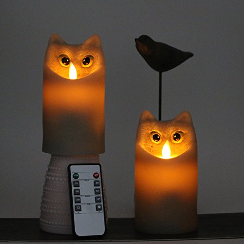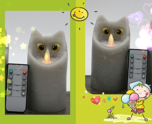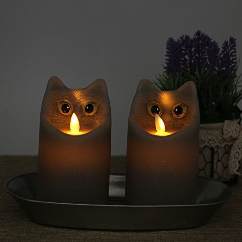 Kitch Aroma Marble Grey Color Cartoon Cat Flameless Candle with Timer For Birthday Gifts,Dia 3" x H6",Pack of 2